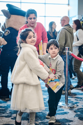 Children bringing in toy donations.