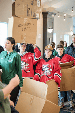 The UFV women’s soccer team and U13 Abby Hawks, U11 C3 AMHA Hockey team helped sort toys after the event.