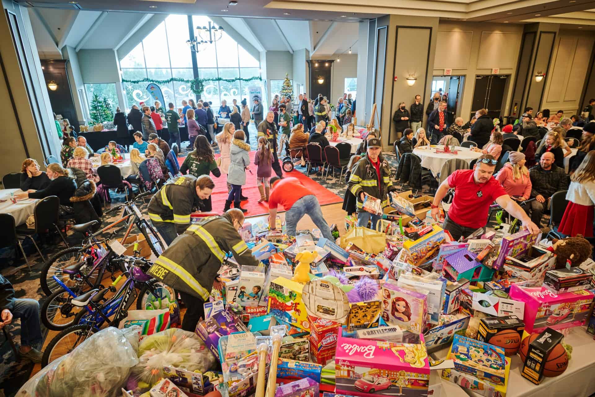While the event title highlights toddlers, gifts are also collected for older children, teens and seniors. The new and unwrapped gifts are gathered into a toy mountain that grows throughout the event.