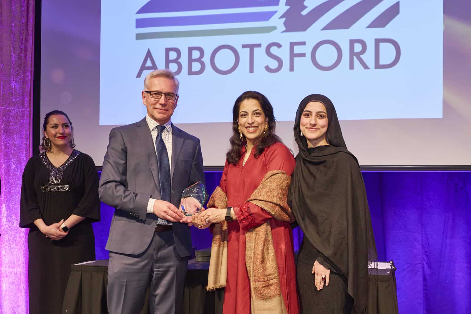 GulRukh Zeeshan and Rida Khan (right) accepted the award on Zeeshan Khan’s behalf. Mayor Ross Siemens represented award sponsor the City of Abbotsford.