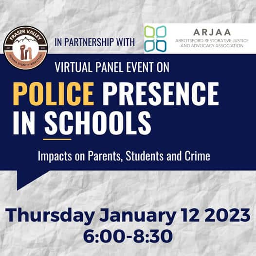 The Fraser Valley Human Dignity Coalition, in partnership with the Abbotsford Restorative Justice and Advocacy Association (ARJAA), is hosting the virtual panel event to discuss what Abbotsford’s program currently looks like and what the review process might look like.