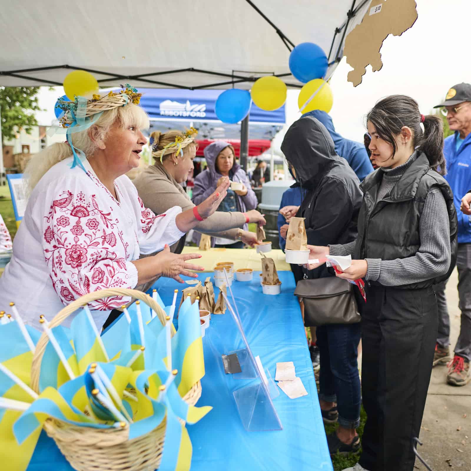 Woman handing out samples at the Ukrainian booth.