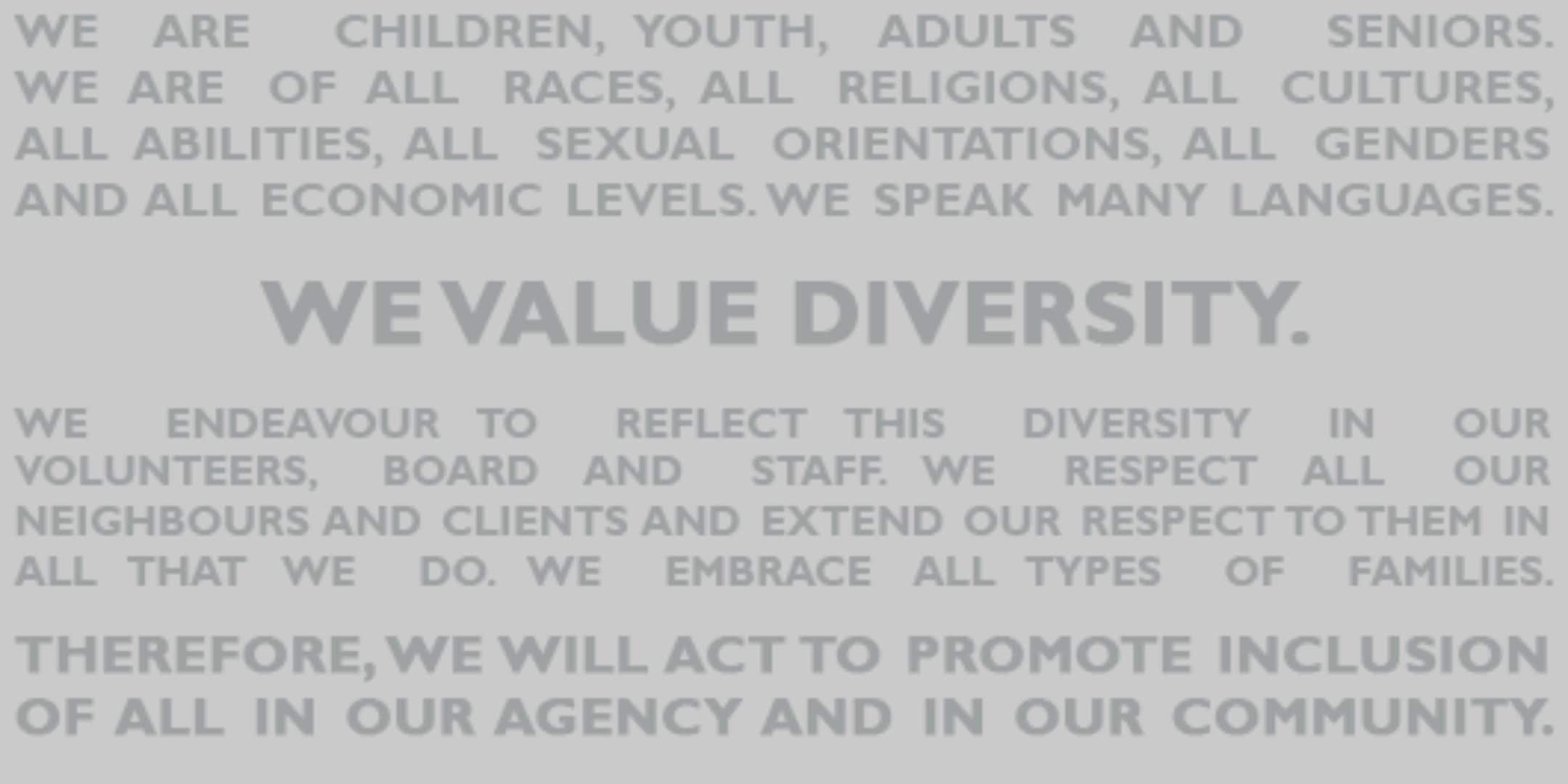 Therefore, we will act to promote the inclusion of all in our agency and in our community.