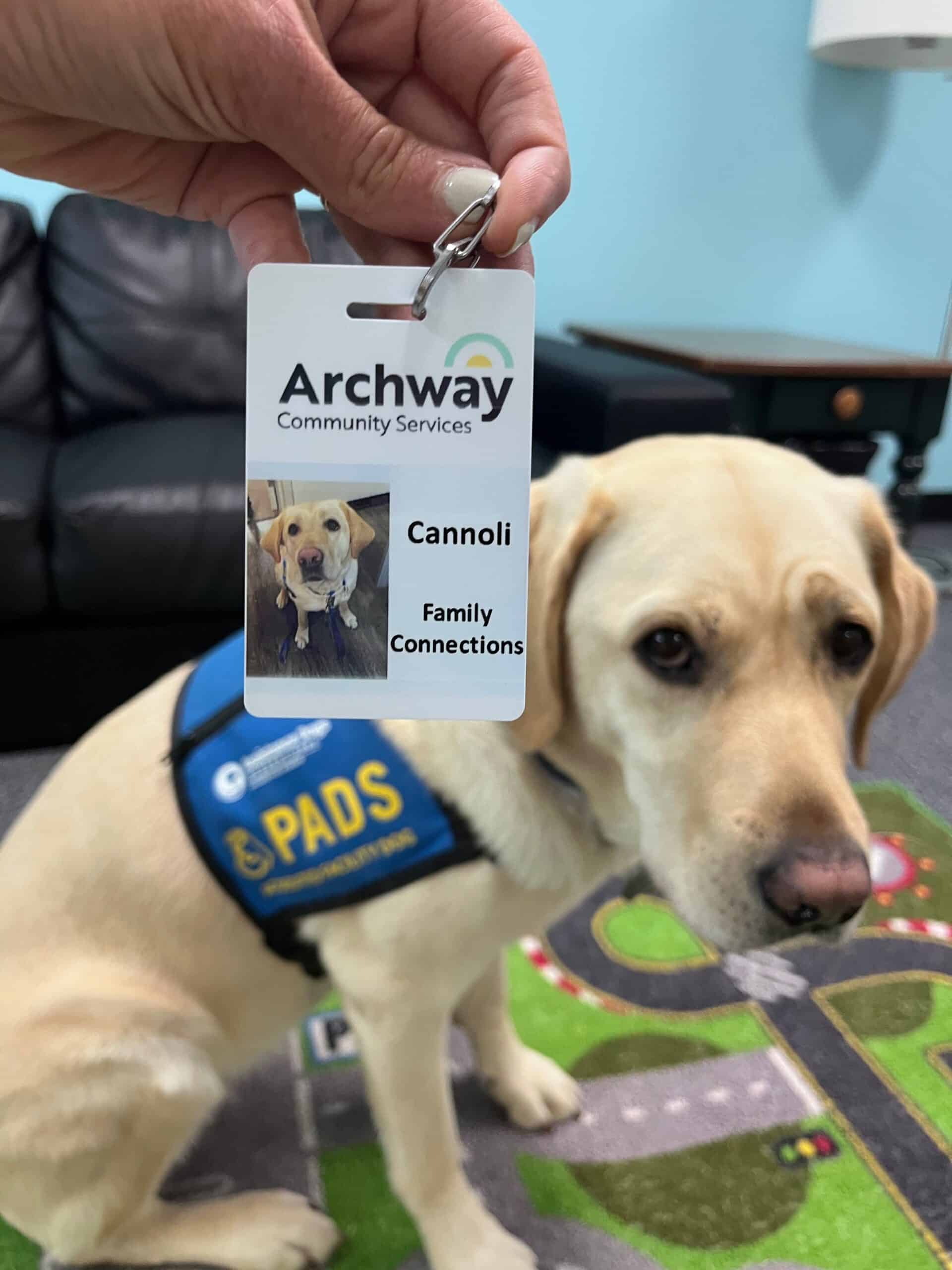 Cannoli, Archway’s furry friend, is a Health and Wellness Accredited Facility Dog who provides comfort and calm to clients and staff alike.