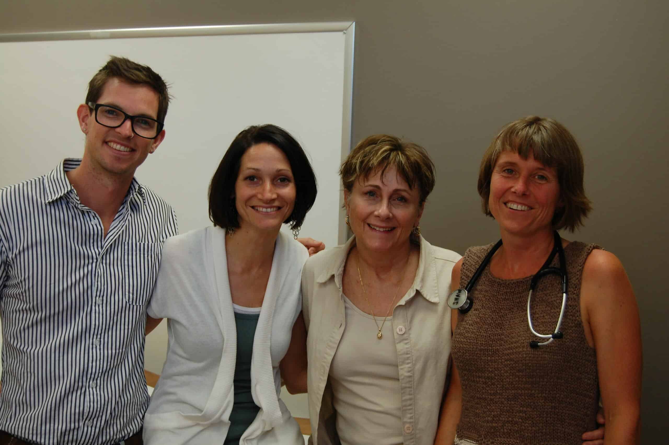 During the early days of the AHYC in 2011. From left to right: Tim Walters (AHYC volunteer), Krista Kenessey (AHYC staff member), Dr. Watt, and Dr. Cindy Shaw (AHYC MD)