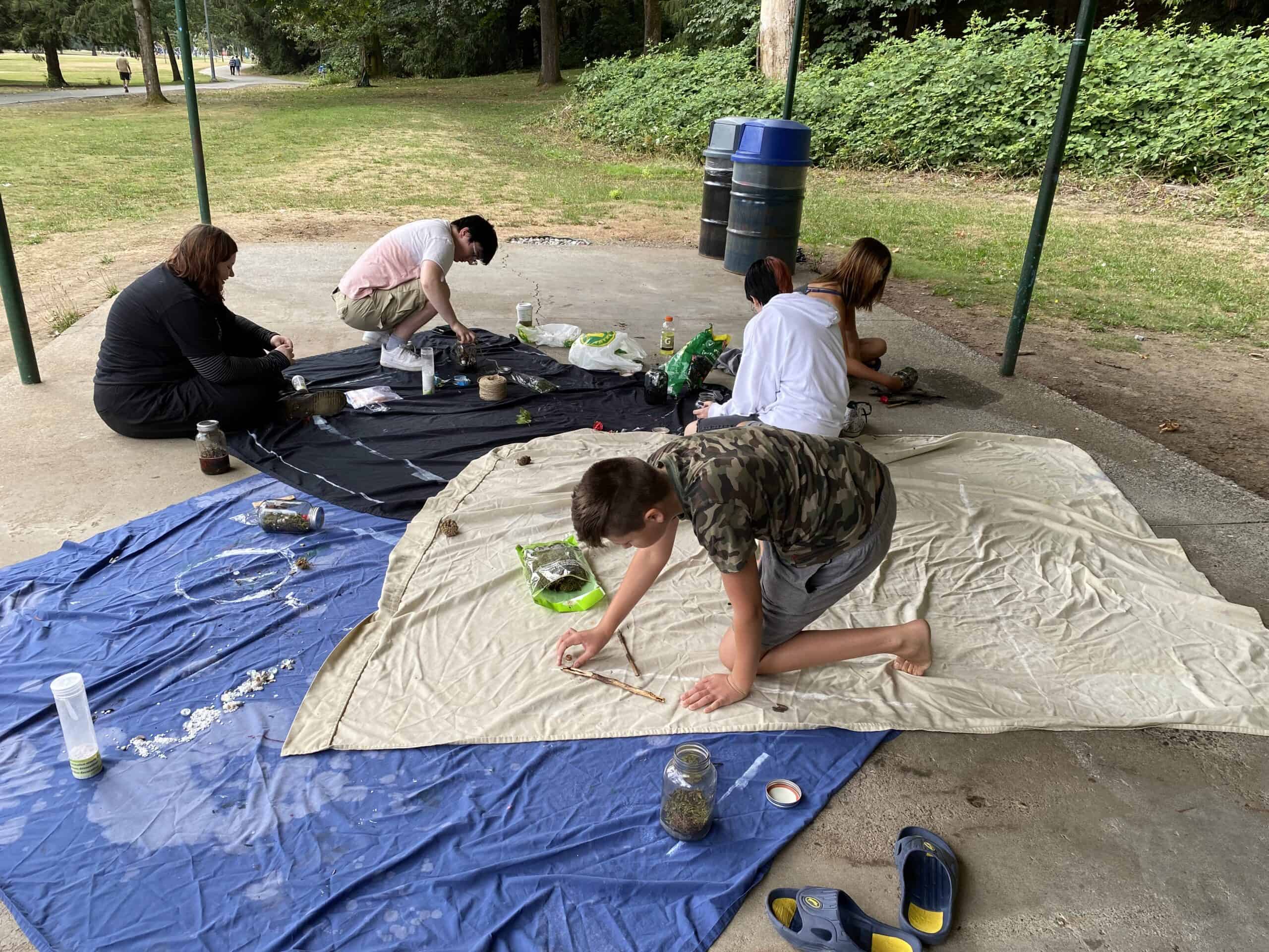 Youth building terrariums at Mill Lake Park.